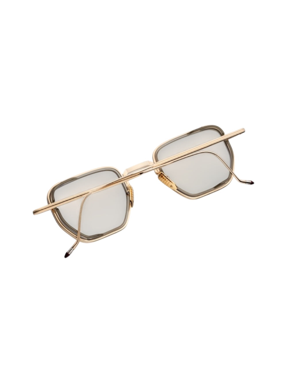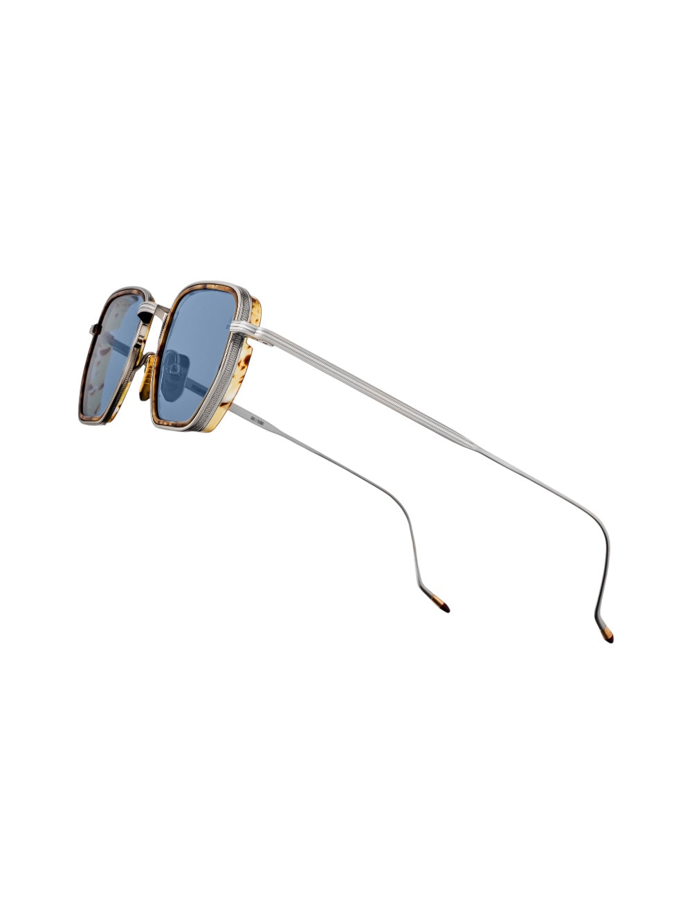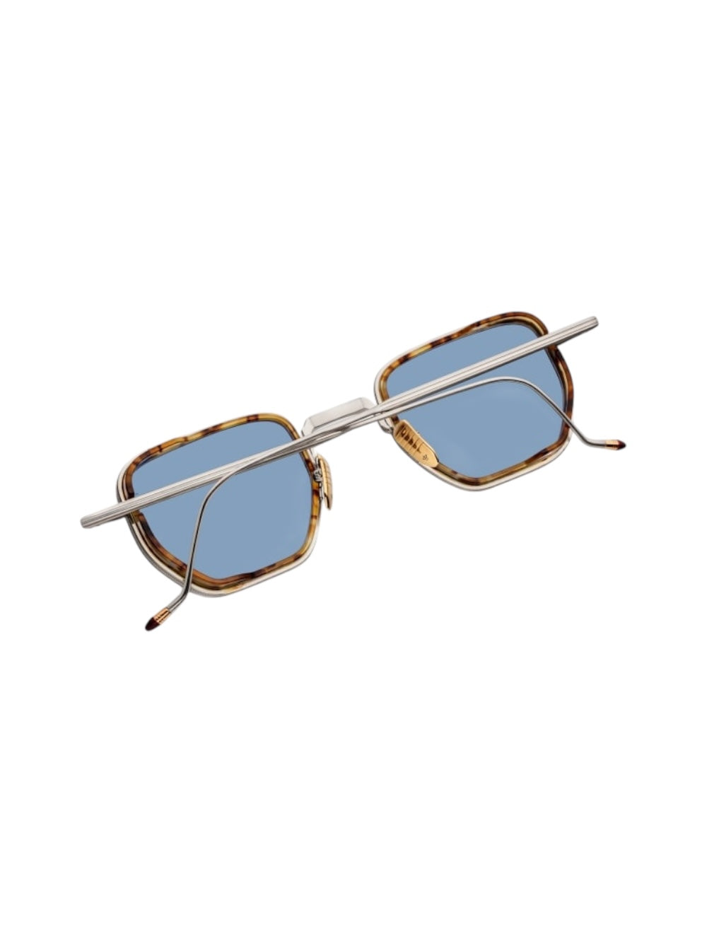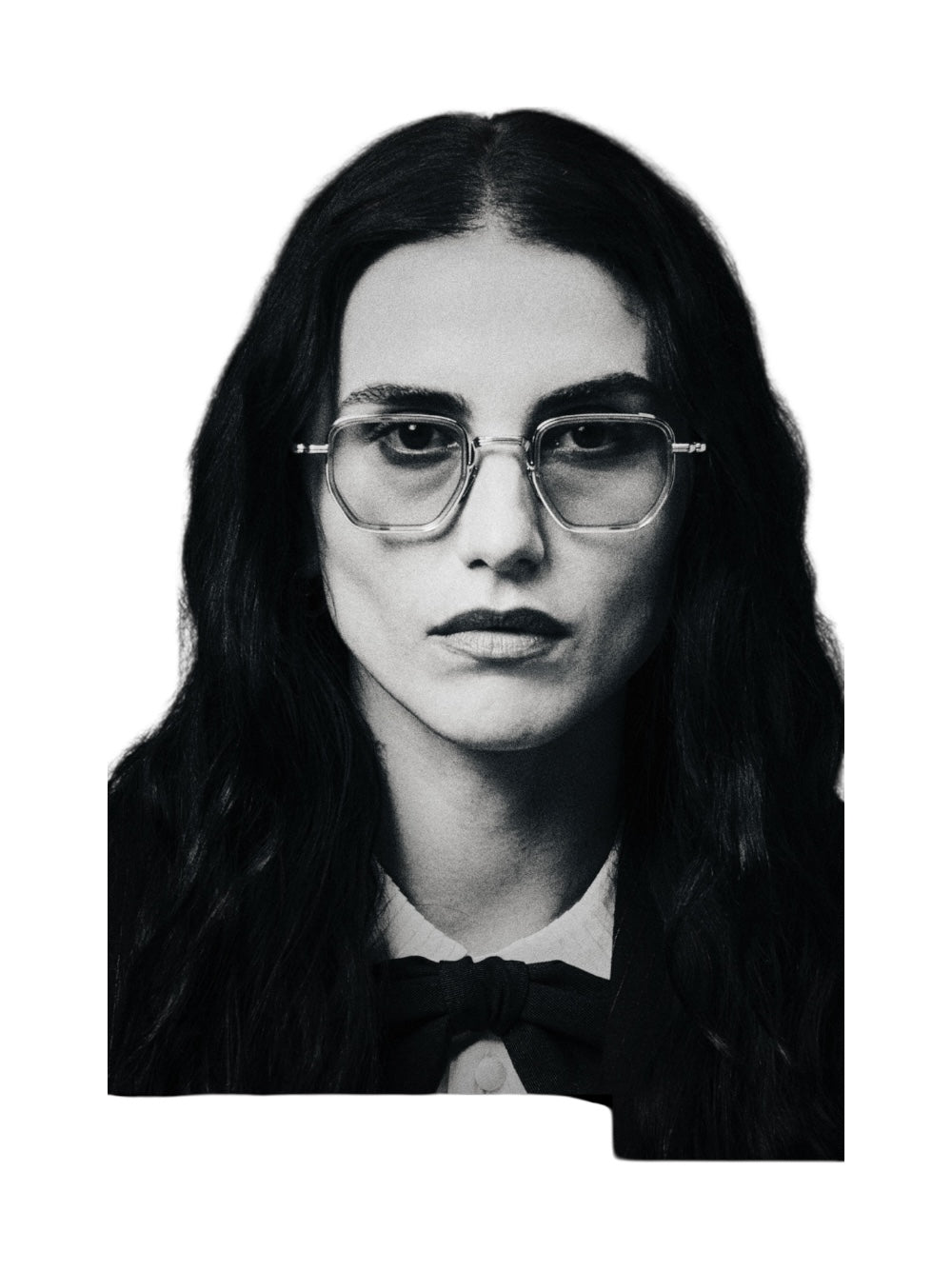 A subtle angular lens shape featuring 10mm cured acetate insert, grooved temple profiles and tailfin temple tips for additional curves and volume.