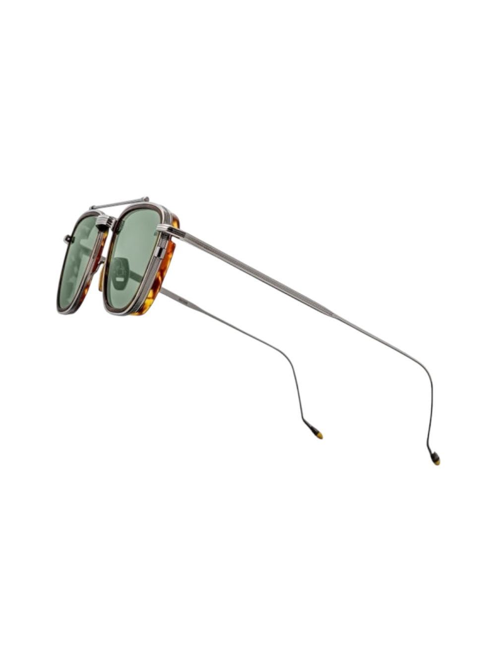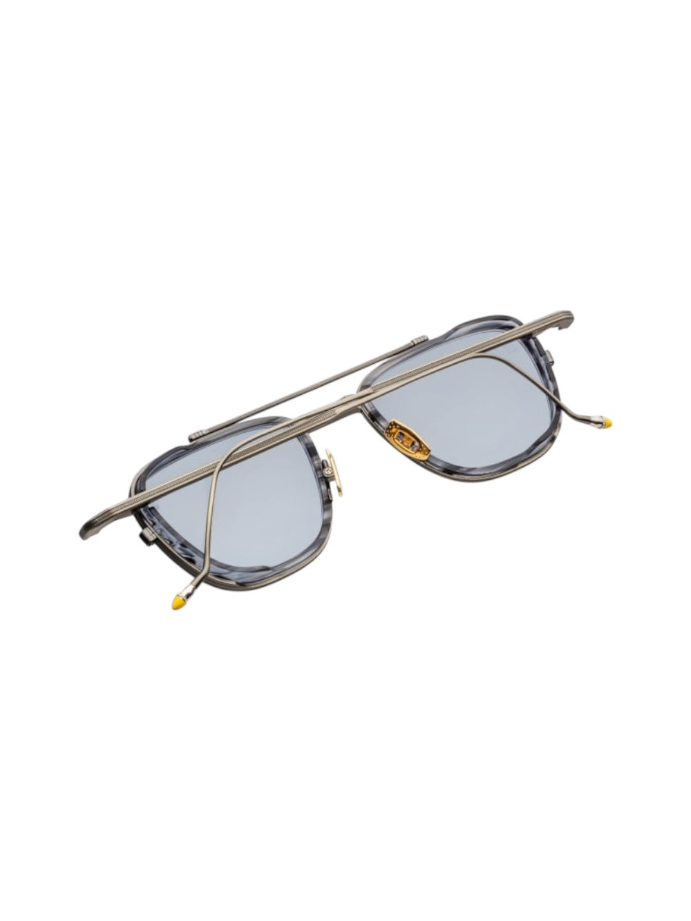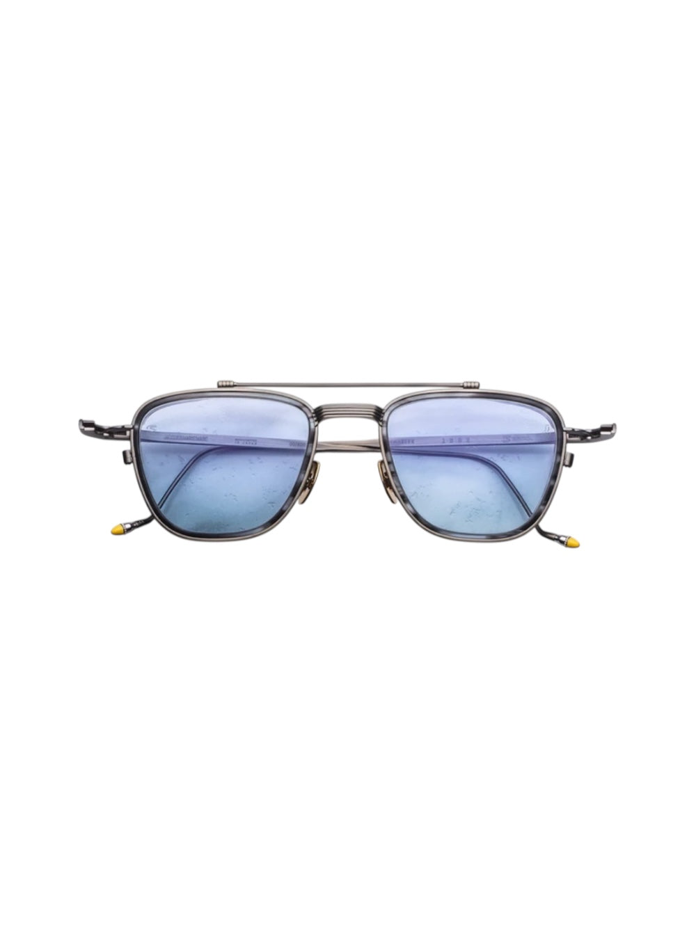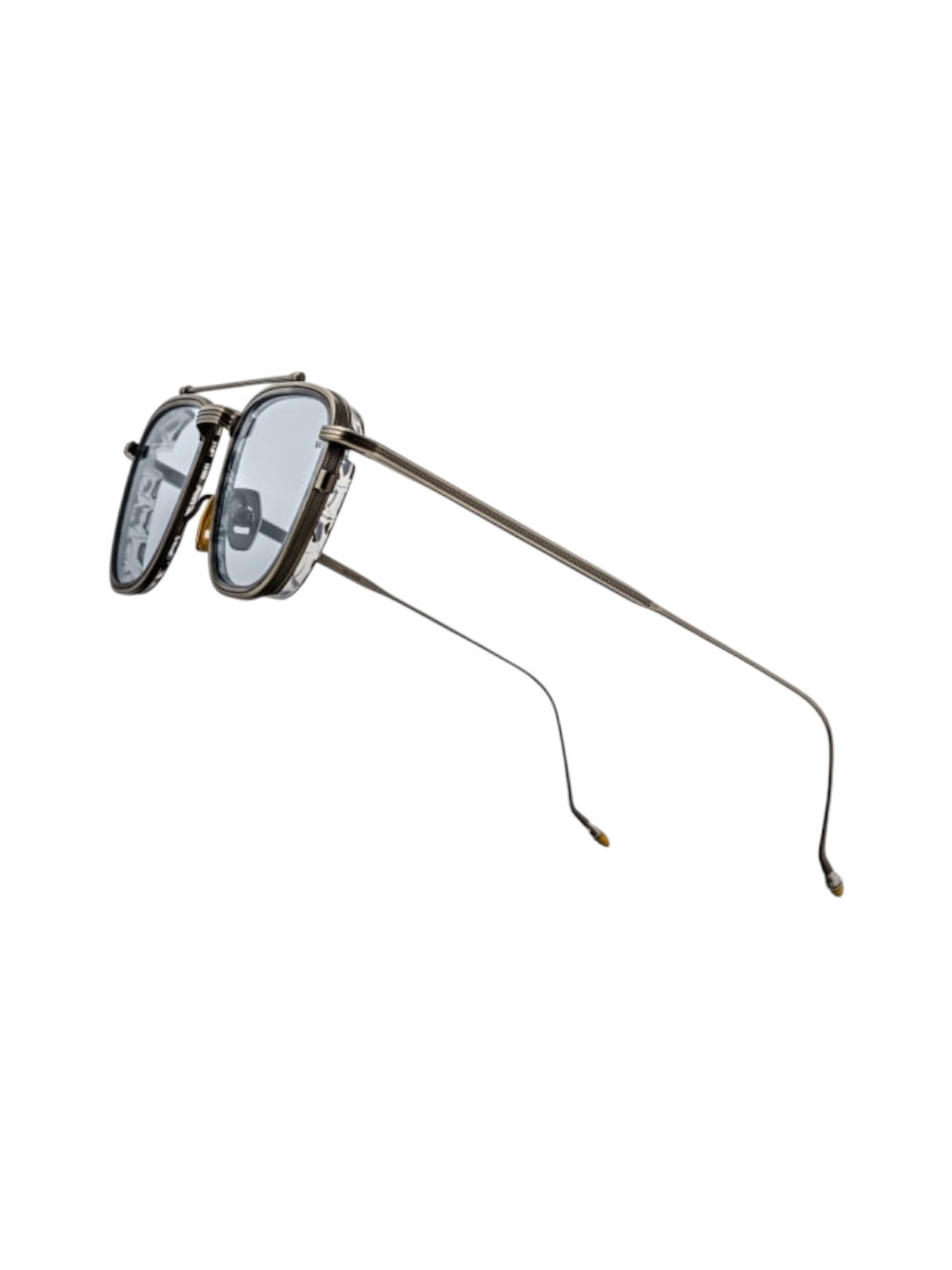 A charismatic '90s-inspired pilot handcrafted from 100% beta titanium, featuring a distinctive top bar, acetate lens-rim insert, sleek temples with refined hairline details, and our signature hand-painted epox temple tips. Accompanied by custom leather eyewear straps.