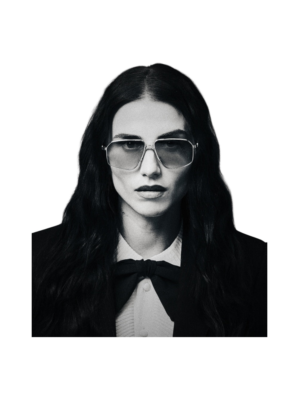 Oversize, late '70s-ispired titanium aviators, featuring sculptural Art Deco-inspired bridge and brown bar, monoblock hinges, and our signature hand-painted epoxy temple tips.